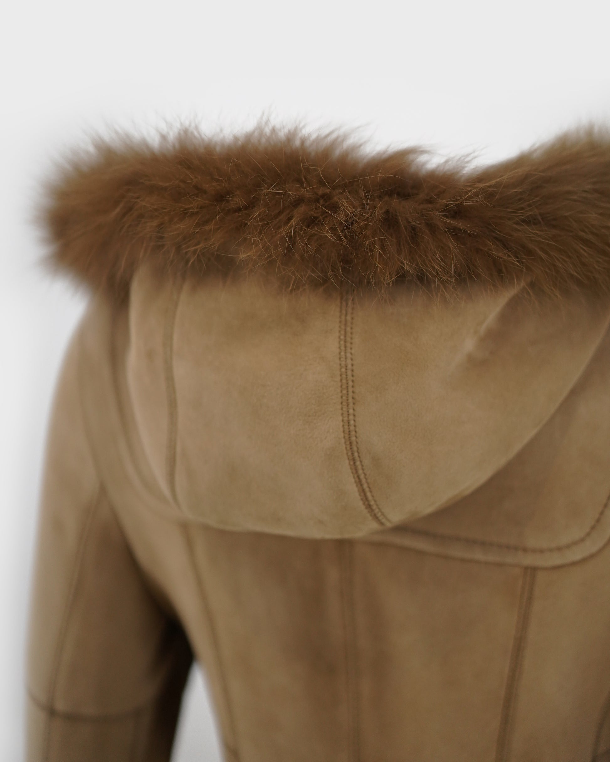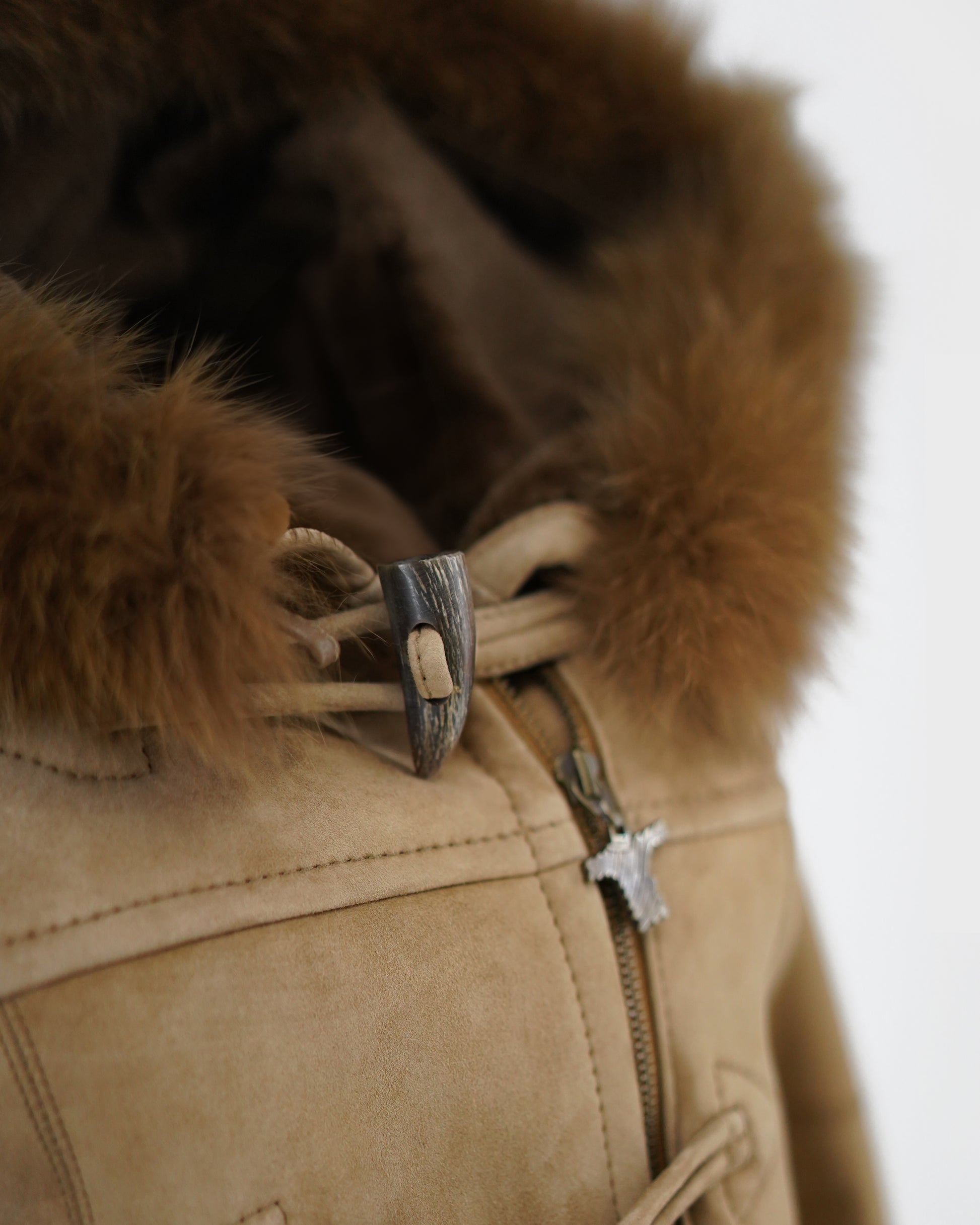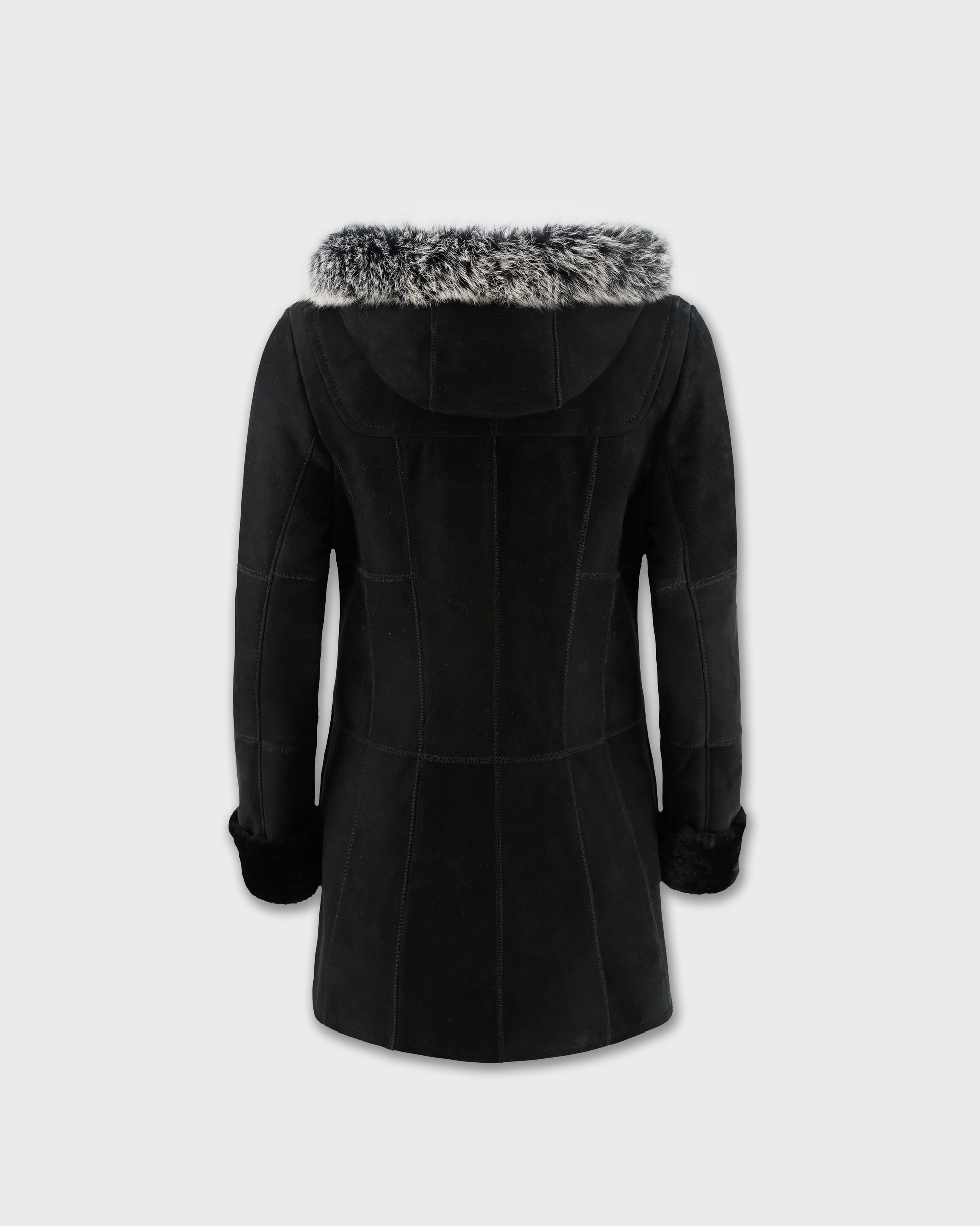 The Dulcie is a lightweight duffle style merino shearling jacket, handcrafted in New Zealand using 10mm shaved wool with a suede finish. This timeless jacket features horn toggles, open hand pockets, and fox fur trim on the hood to give a soft and luxurious feel. The Dulcie duffle is a wardrobe essential.